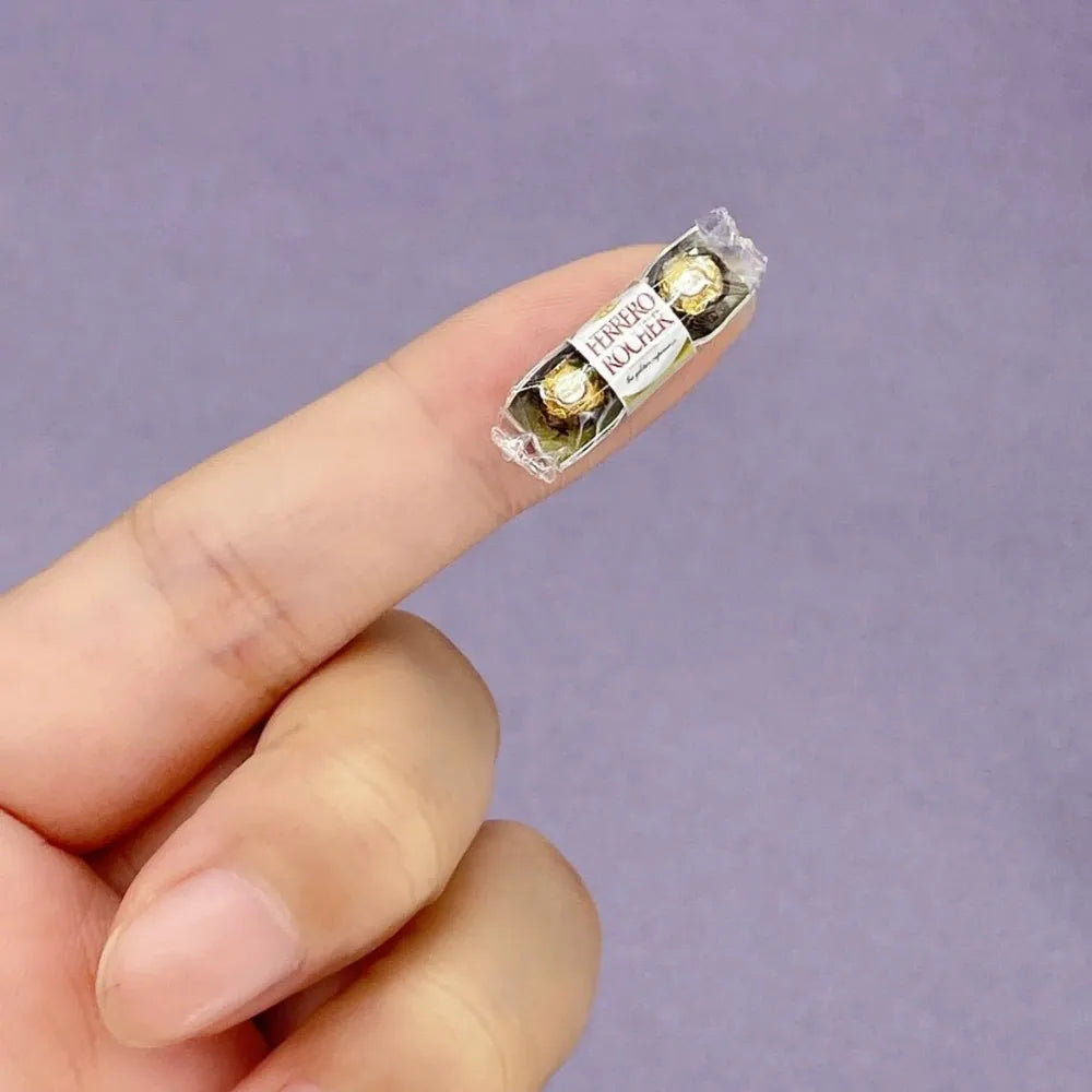 Product Overview: Indulge your miniatures with the ultimate sweet treat. Our 1/12 Scale Chocolate Collection features ultra-realistic hazelnut truffles individually wrapped in signature gold foil. Whether you are stocking a miniature grocery store or preparing a romantic dollhouse proposal, these high-detail "Ferreto Rodger" parodies add a touch of luxury to any scene.