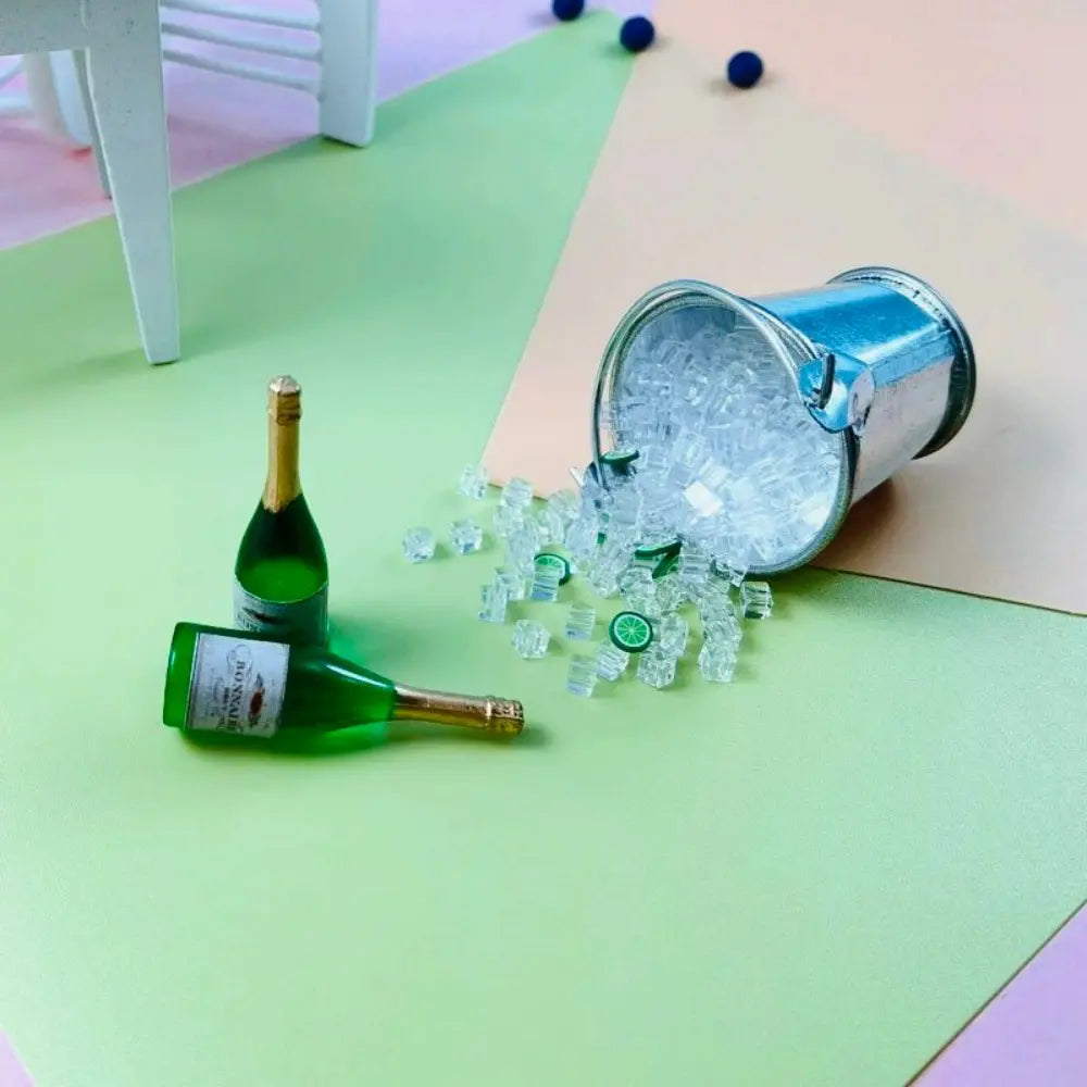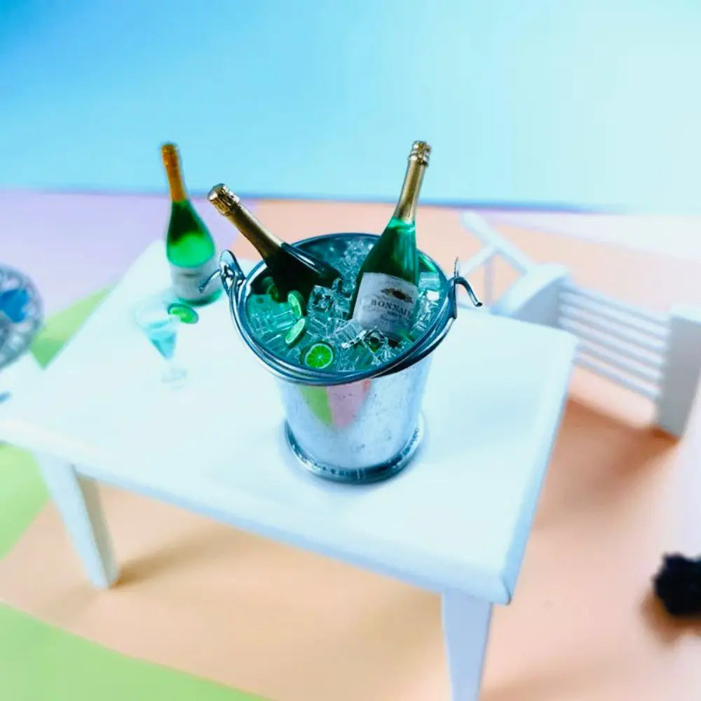 Product Overview: A highly detailed, realistic miniature set featuring a simulated ice bucket and champagne bottles. Perfect for DIY dollhouse builds, miniature bars, or celebratory scenes. This is an artisanal scale model; please review dimensions carefully before purchase.