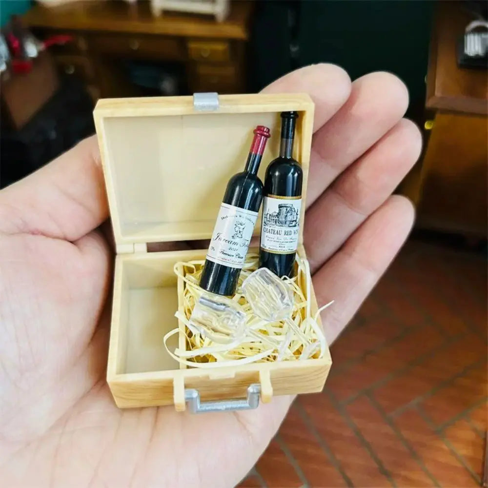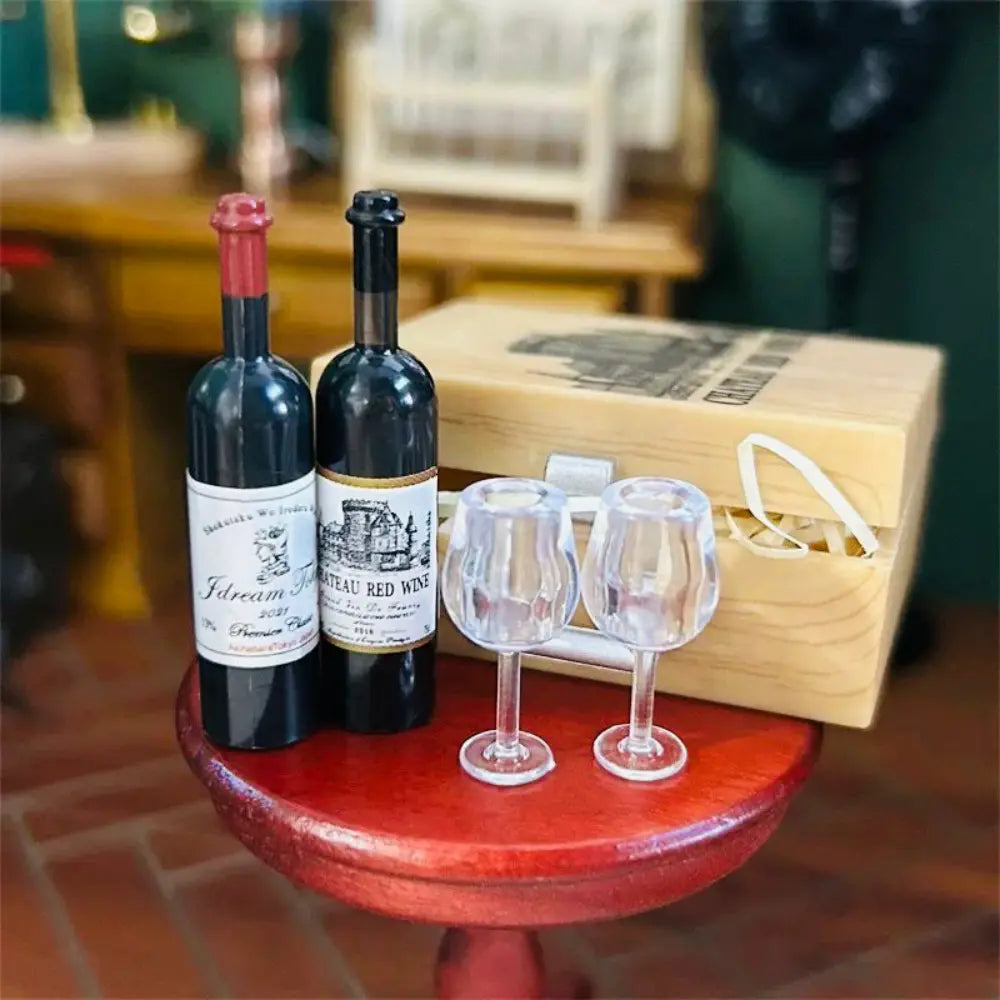 1/12 Scale Miniature Wine Bottle & Stemmed Glass Set Dollhouse Decor